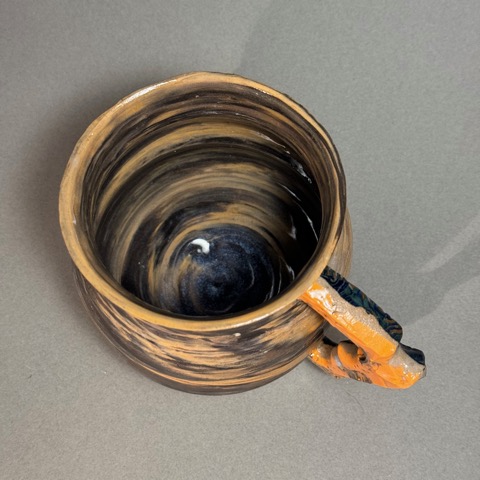 Incredible orange swirl mug, a very small crack inside makes it non-functional, Would make a very nice small vase